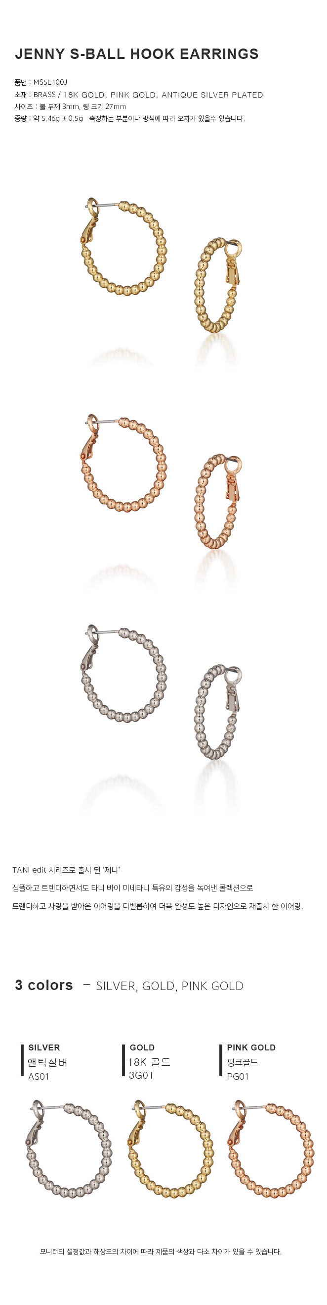 Color : Antique Silver, 18K Gold, Pink Gold